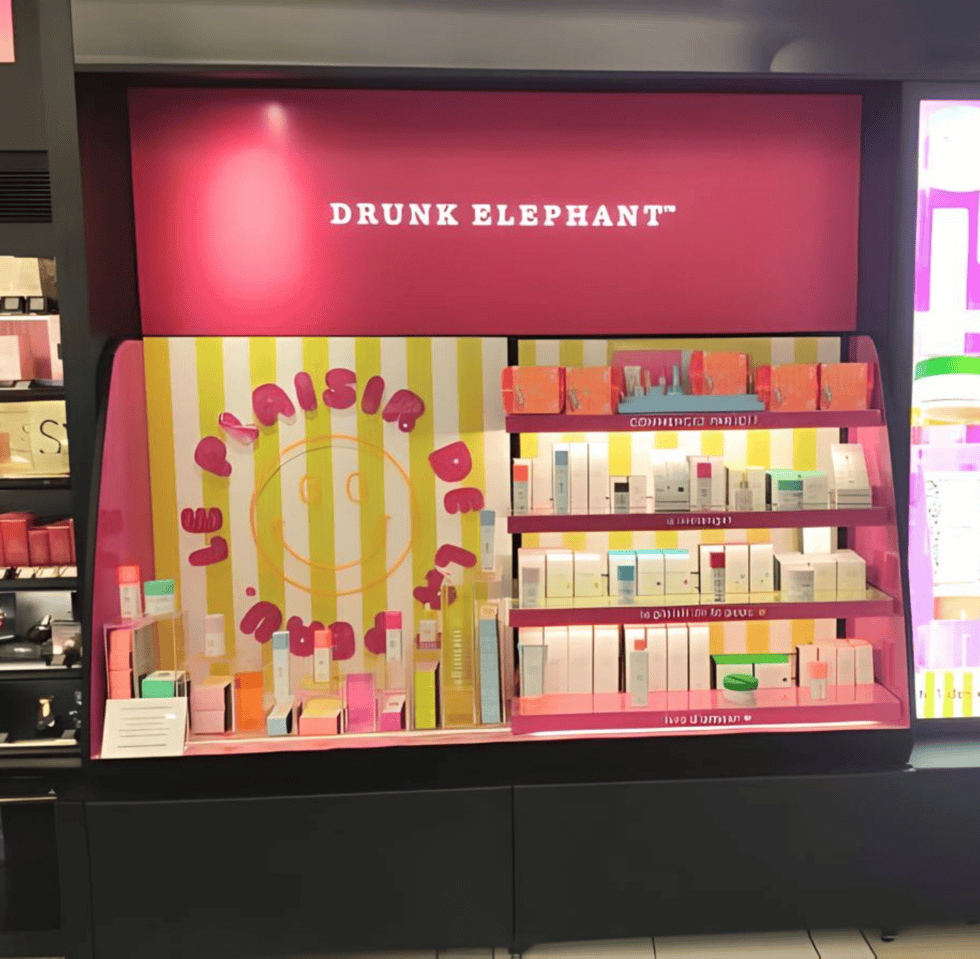 PLV para Drunk Elephant diseñado y fabricado por el Grupo Mayence